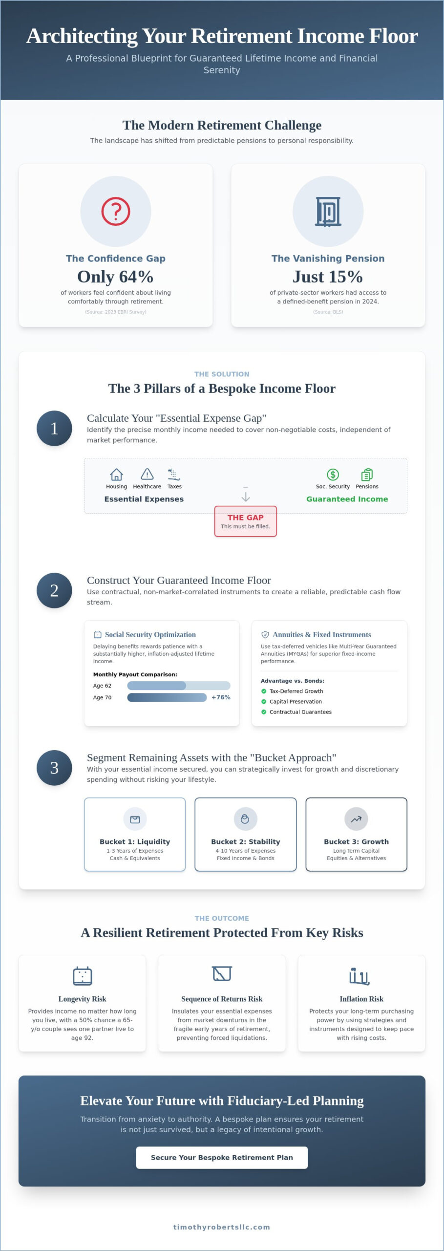 - Learn to calculate your “Essential Expense Gap” and architect bespoke guaranteed income for life strategies that provide a sophisticated, non-market-correlated income floor.