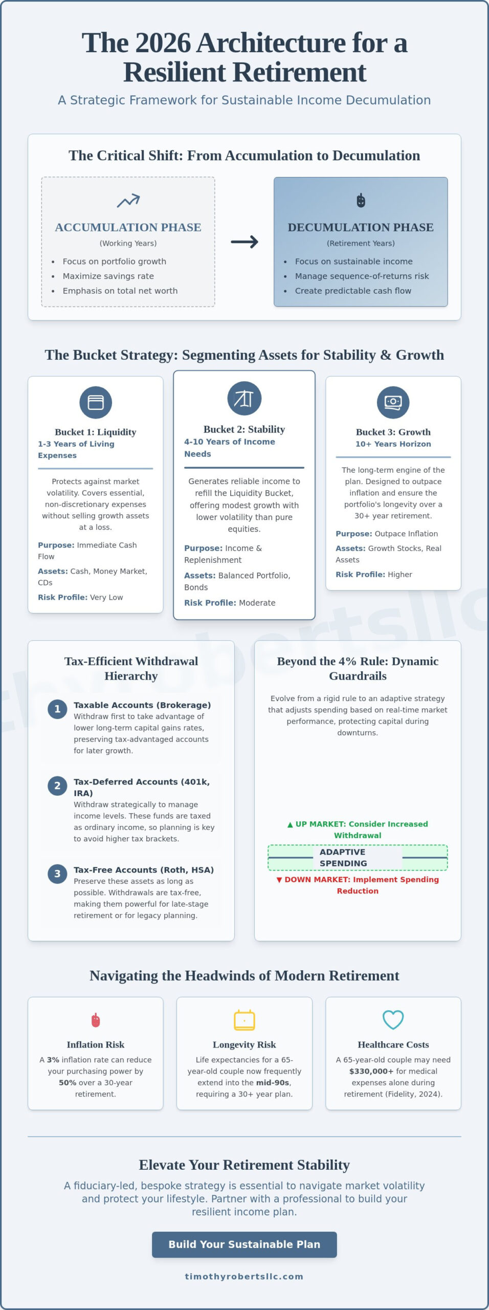 - Shift from a simple accumulation mindset to a strategic distribution framework to effectively mitigate the risks of longevity and inflation.